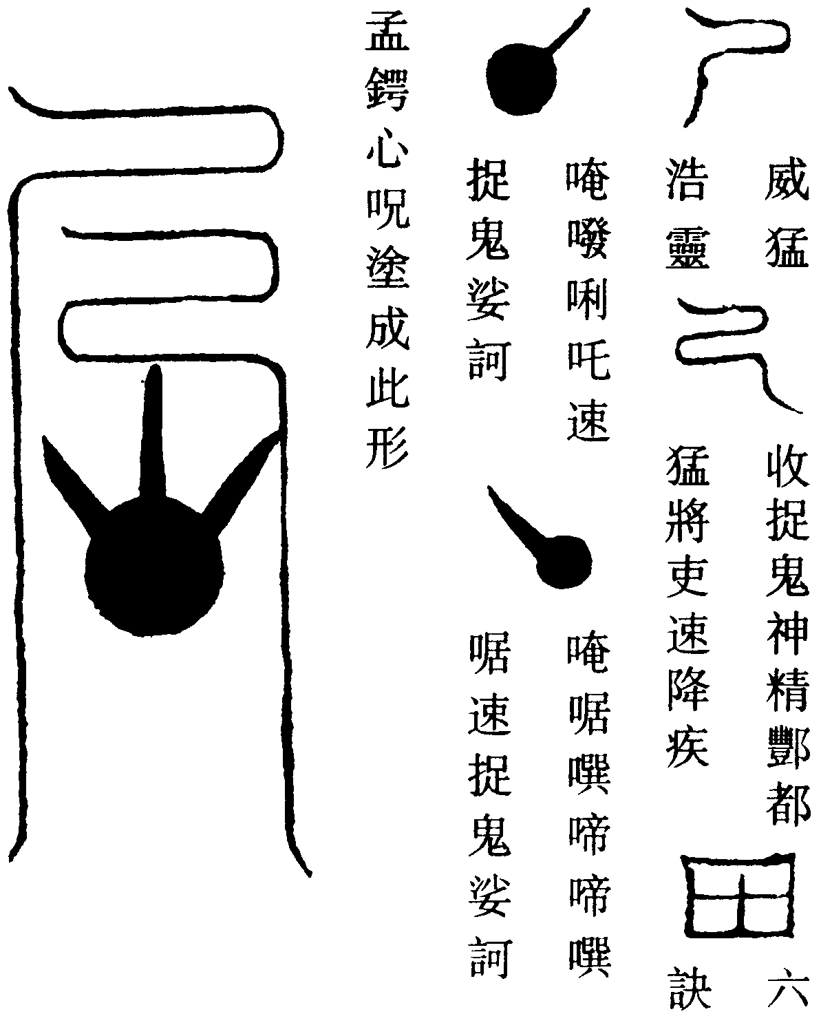 此乃酆都大帝及殿上鬼軍使者之內名,誦之眾神皆至,若迭書於符上,報應尤捷,凡書酆都符命,必用作急書之,勇猛書之,不可緩,將帥性急,庶易取效也。