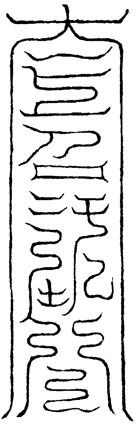 運元始祖氣,啞啞聲入符中。更取靈字着意入符中。仍書<口虩>字入符肚中。再存祖氣中有 字。用意運出書符。口中念雷部使者咒,用誓章祝遣。
